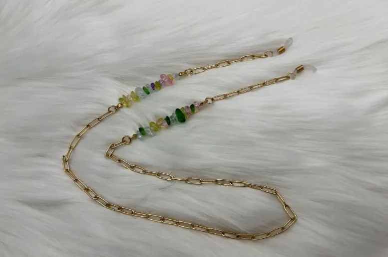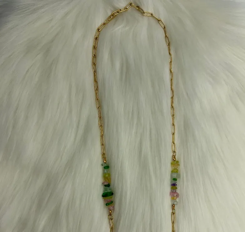 שרשרת זהב מעוצבת עם אבנים צבעוניות